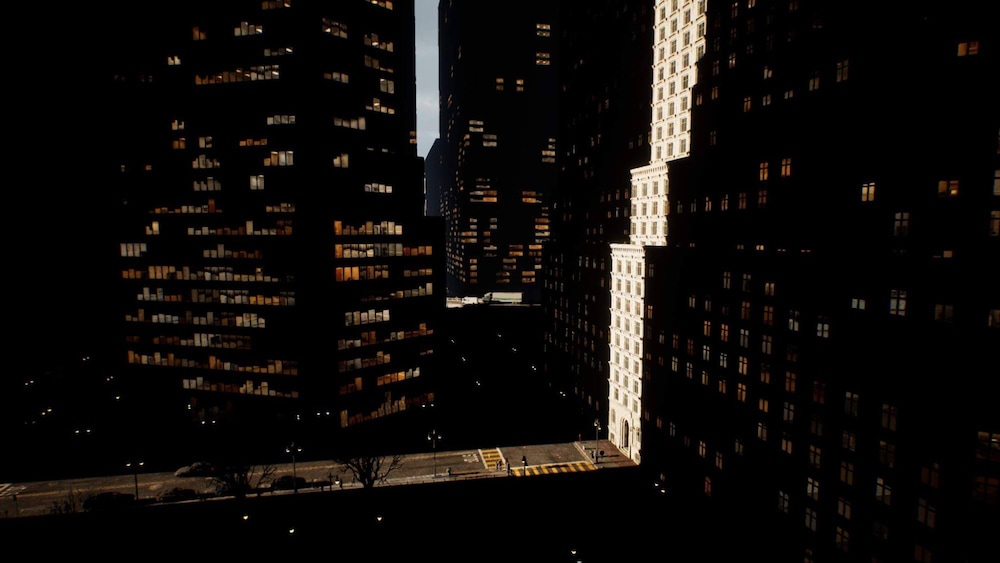 在《黑客帝国觉醒:虚幻引擎5体验》技术演示中,高耸的城市建筑挡住了太阳的直接光照,因此屏幕中的大部分内容都是由Lumen提供光照的。