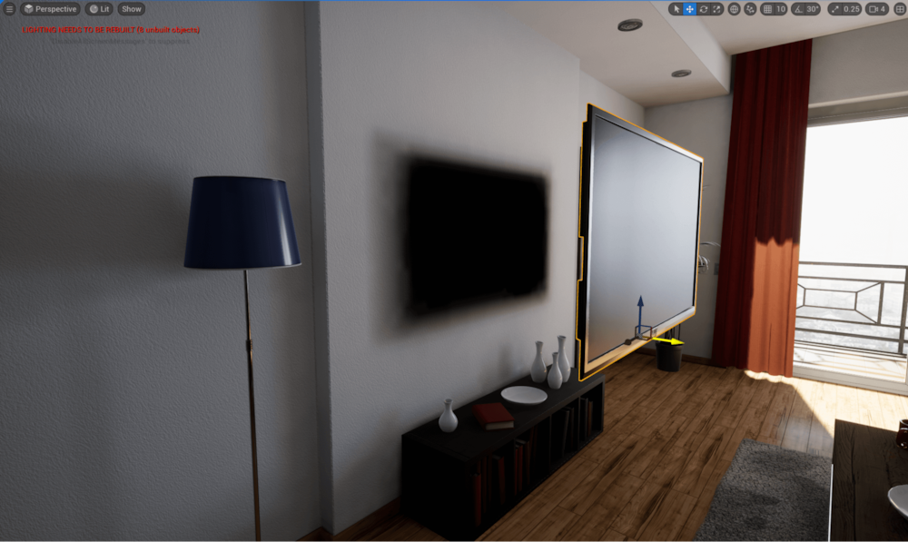 过去,在大多数游戏中,全局光照只能通过一个名为“光照贴图烘焙”的离线过程处理,因为它的计算成本太高,无法实时计算。在虚幻引擎中,光照贴图通过CPU Lightmass或GPU Lightmass烘焙。光照贴图提供的静态光照可以带来非常高的质量,但是需要很长的构建时间,并且极大地限制了游戏环境。任何会显著改变间接光照的动作(如移动壁挂电视)都会使光照状态变得不正确。